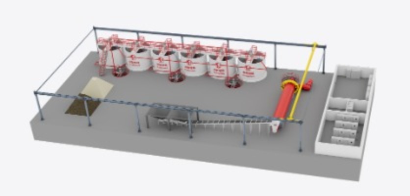Mischen und Batching -System: Dazu gehören Silos zum Speichern von Rohstoffen, Skalen zum präzisen Wiegen und einen Mixer mit großer Kapazität zur Erstellung der Aufschlämmung.